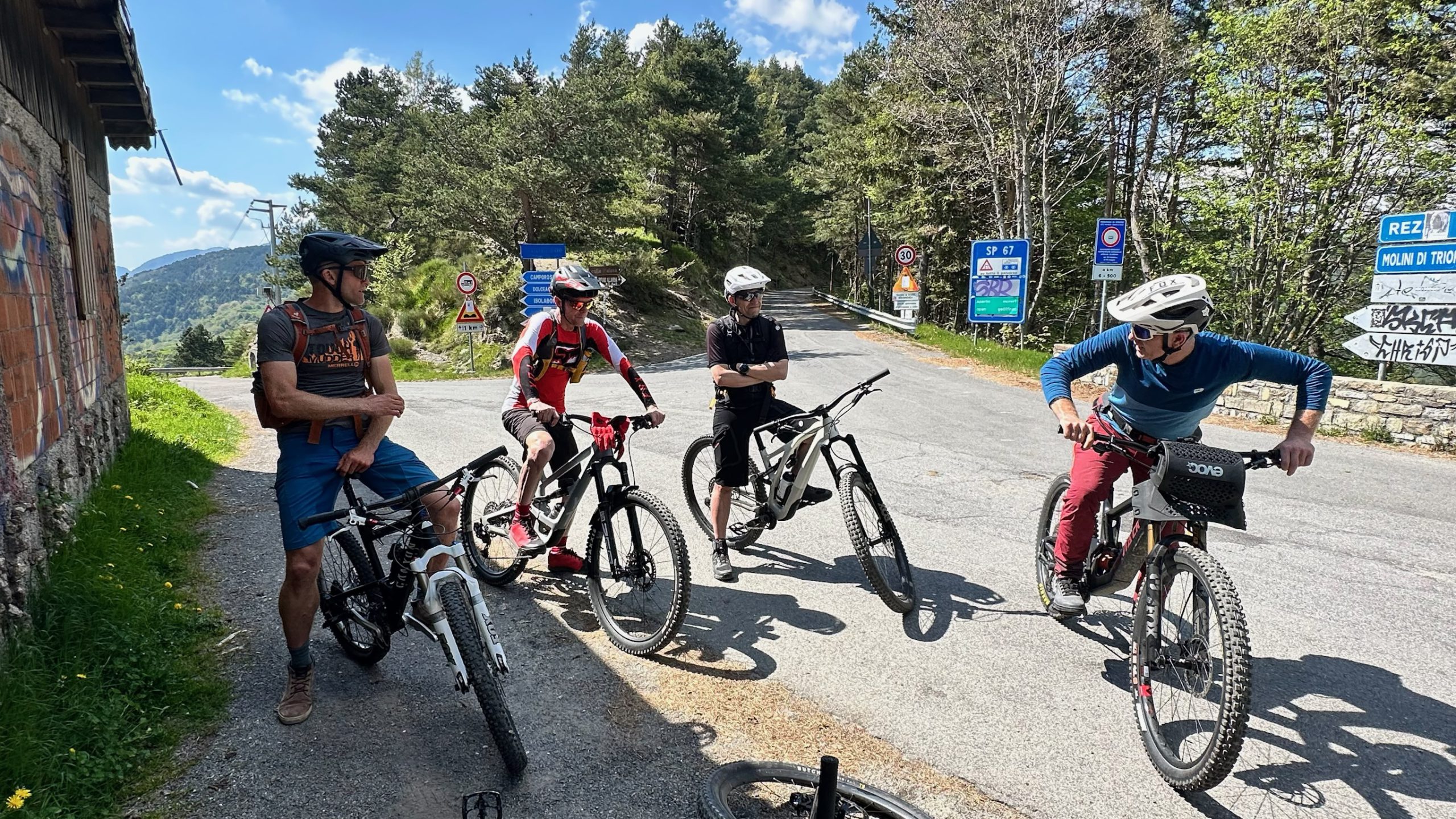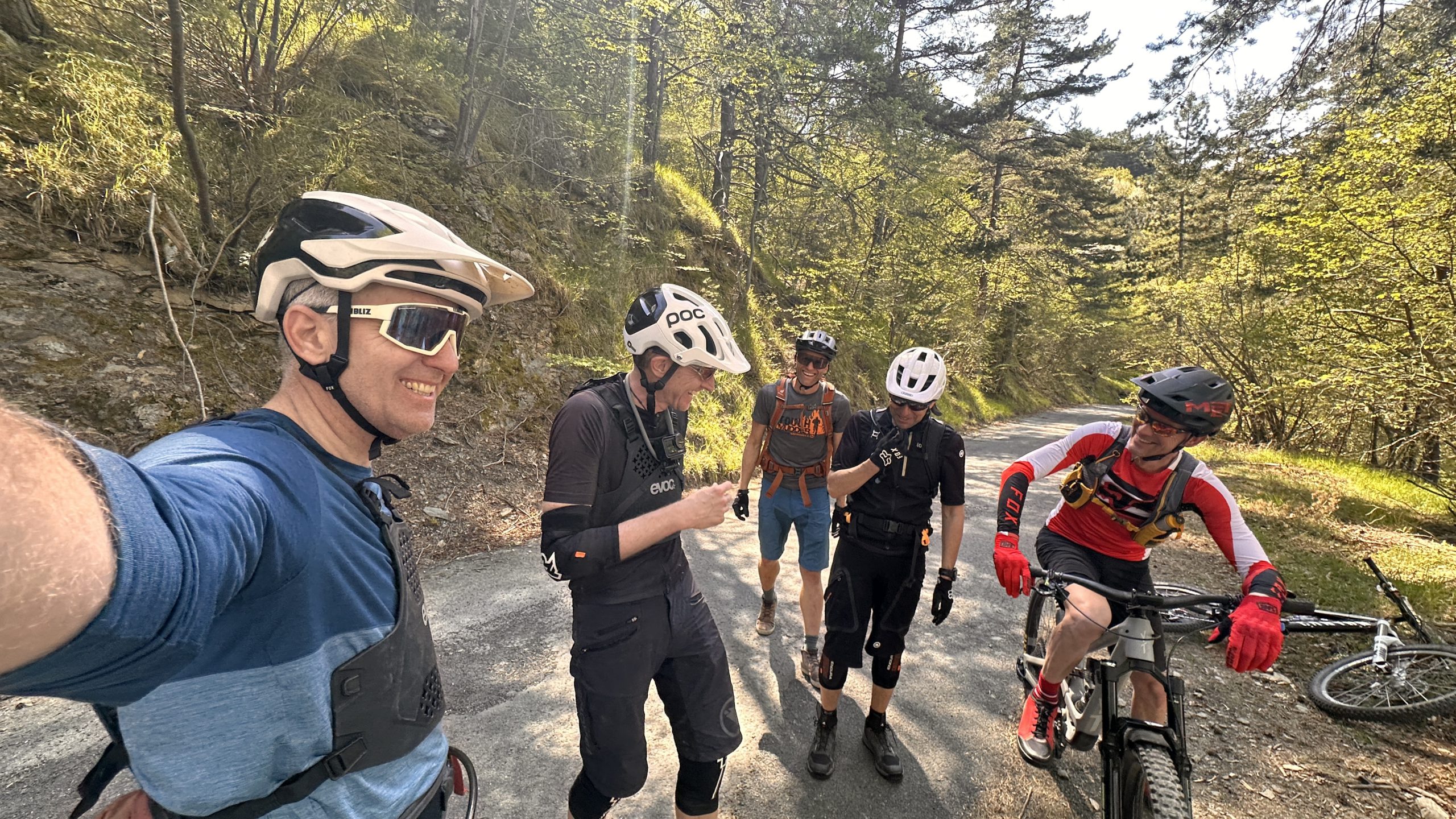 Wir treffen uns am Anreisetag gegen 13:00 Uhr in Molini di Triora. Nach einem ersten kurzen Kennenlernen und einem gemeinsamen Bike- und Ausrüstungscheck machen wir uns entspannt auf den Weg und pedalieren ganz gemütlich die ersten etwa 700 Höhenmeter auf einer abgelegenen Asphaltstrasse nach oben. Dabei lernen wir uns näher kennen und kommen ins Gespräch. Ein erster Naturtrail bringt uns dann wieder zurück nach Molini und stimmt uns perfekt auf die kommenden Trailtage ein.