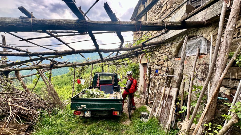 Nach einem letzten Frühstück und dem Check-out in Molini bringt uns unser 4×4 Shuttle noch einmal ganz weit nach oben, um 1200 Höhenmeter feinsten Alpintrail unter die Stollen zu nehmen. Am späten Nachmittag fahren wir dann etwa anderthalb Stunden in einen kleinen Ort oberhalb von Finale Ligure, checken in unserem gemütlichen Agritourismo ein und lassen den Abend anschließend in einer typisch italienischen Pizzeria ausklingen